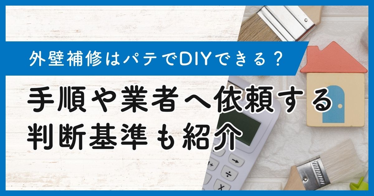 外壁補修をパテでDIYする方法や、業者依頼すべきケースについては、以下の記事で紹介しています。