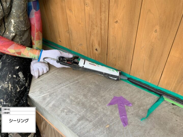 プライマーを塗布後、新しいシーリングを打ち込んでいきます